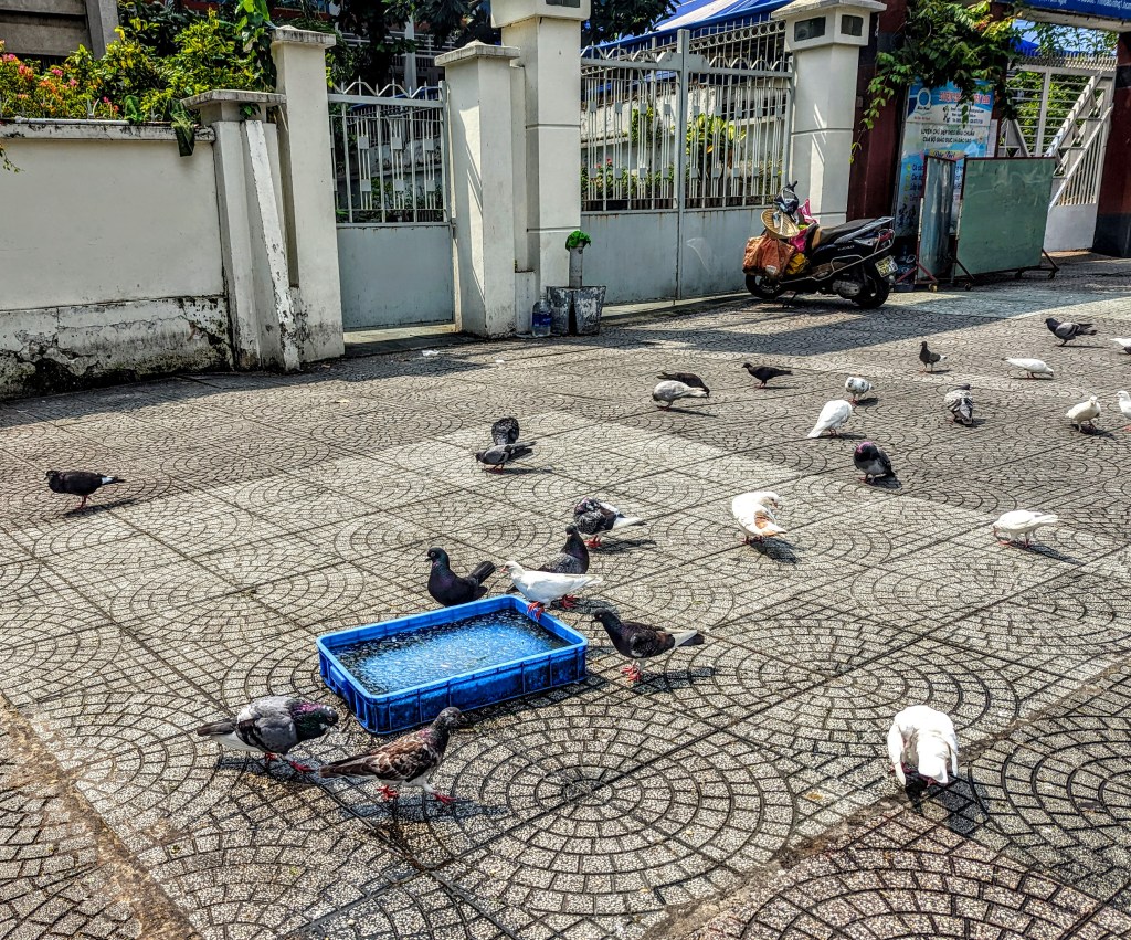 3- Affordable lifestyles can make people happier, especially me. I guess I’m one of those awful, ‘I go there ‘cuz it’s cheap’ kind of tourists, but I am genuinely fascinated by other places and I enjoy learning about and assimilating myself into other cultures. Someone made a tray of ice water for these pigeons to drink, as it was 35°C in Ho Chi Minh. I think it was a nearby fruit juice stall that did it. What lovely people. No relation to the original point, just wanted to get the pigeons in.
