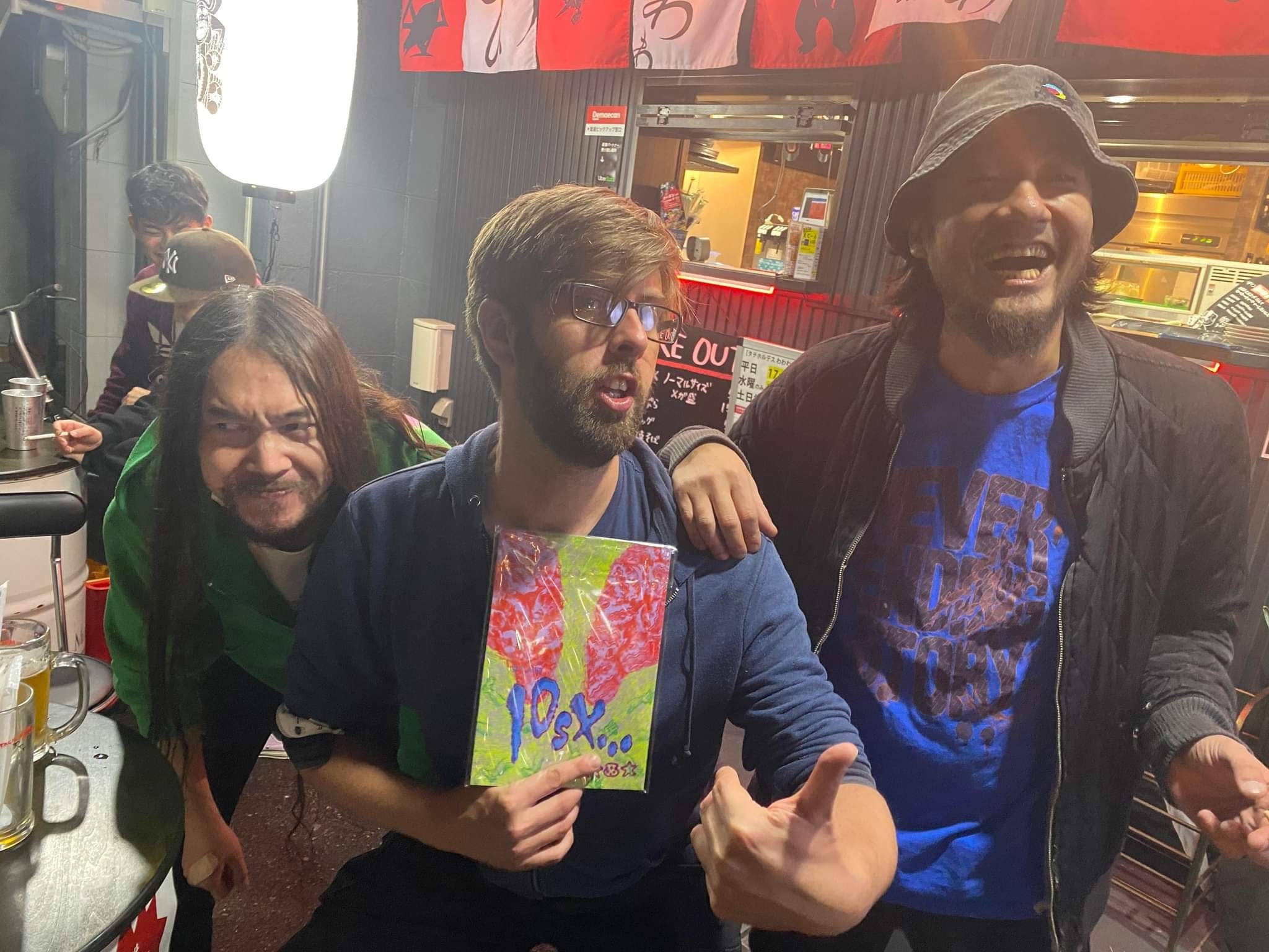 - Two cool guys and little ol’ me, clutching their hot-off-the-press manga ‘SF Null’ (大西大 × 弓塲勇作 「SF ヌル null」 (mograg.com)) It was weird and I couldn’t read 95% of it, but I’ll get around to it soon.