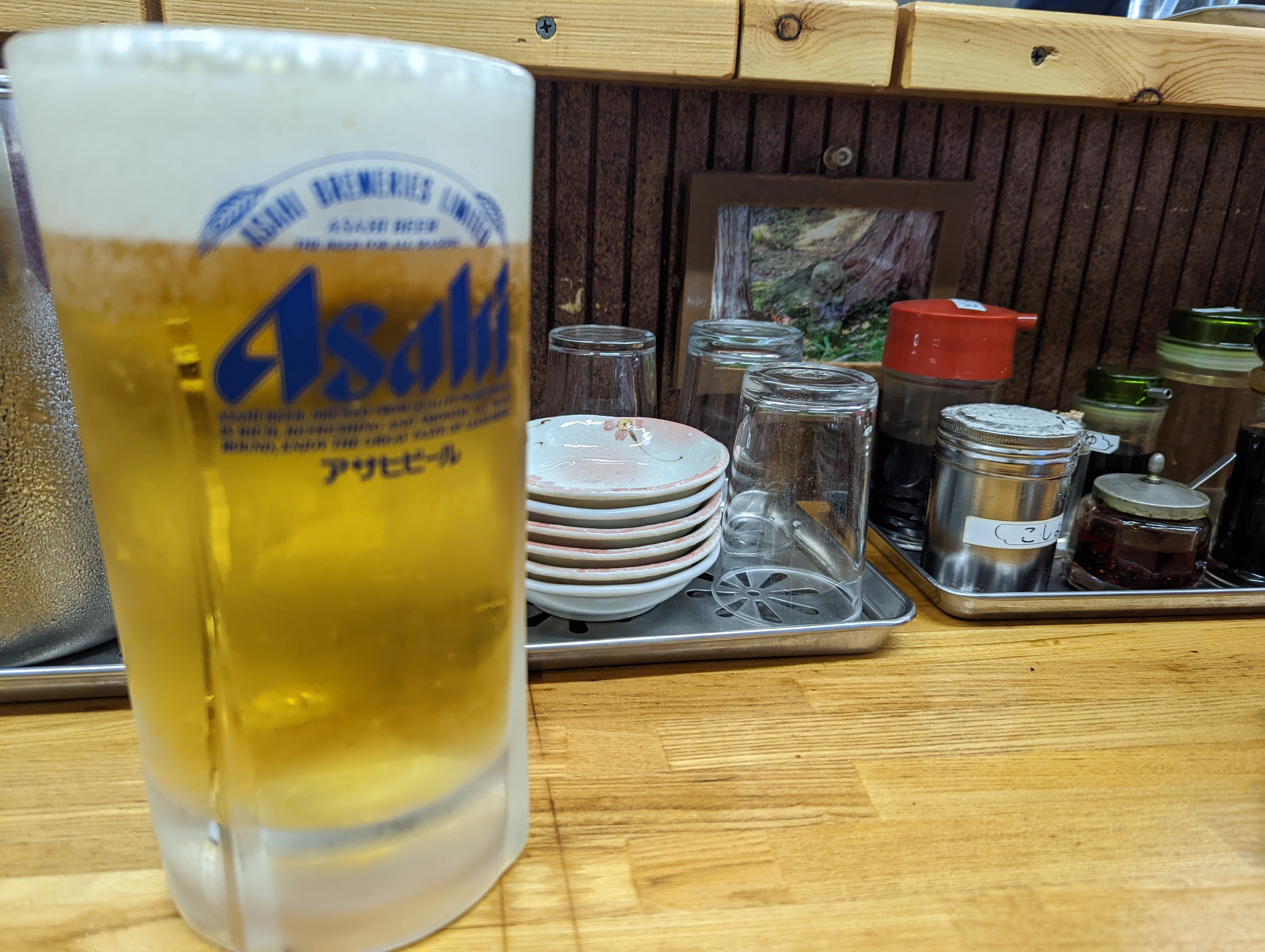Like an overexcited child on Christmas morning, I dumped my bags, changed my shirt and ran straight to the restaurant next door, Asahi-tei (https://goo.gl/maps/5RbxfwpenYh1Q4Xb8), and had a Lunch Set accompanied by a big ol’ frozen glass of Asahi. It was the moment that the reality of my situation hit me, and so I took a few moments to appreciate just how wild and unexpected a twist my journey had taken in the last few days.