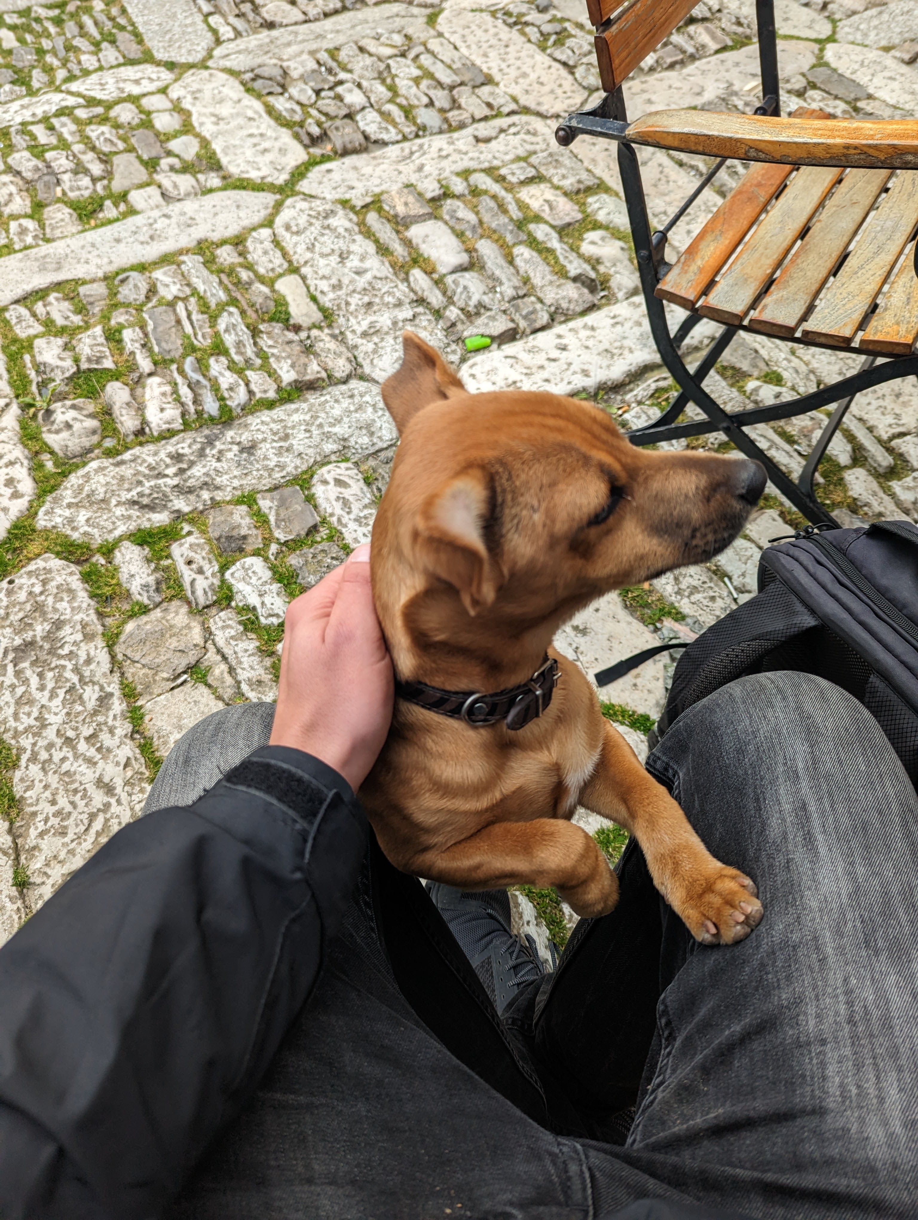 I miss Babu, Brixworth’s premier refugee street beast, as she’s the most beautiful, loving and genuinely gorgeous creature I think I’ve ever met, dog-wise. So it’s always lovely to meet another canine babe. This little thing was a joy. Perched by the door one moment, coming in for scritches the next, scampering around the square upsetting other dogs after that, beautiful and mischievous and gentle as anything, I’d have taken her with me if it wasn’t technically a crime and an ‘All Round Bad Idea™’.