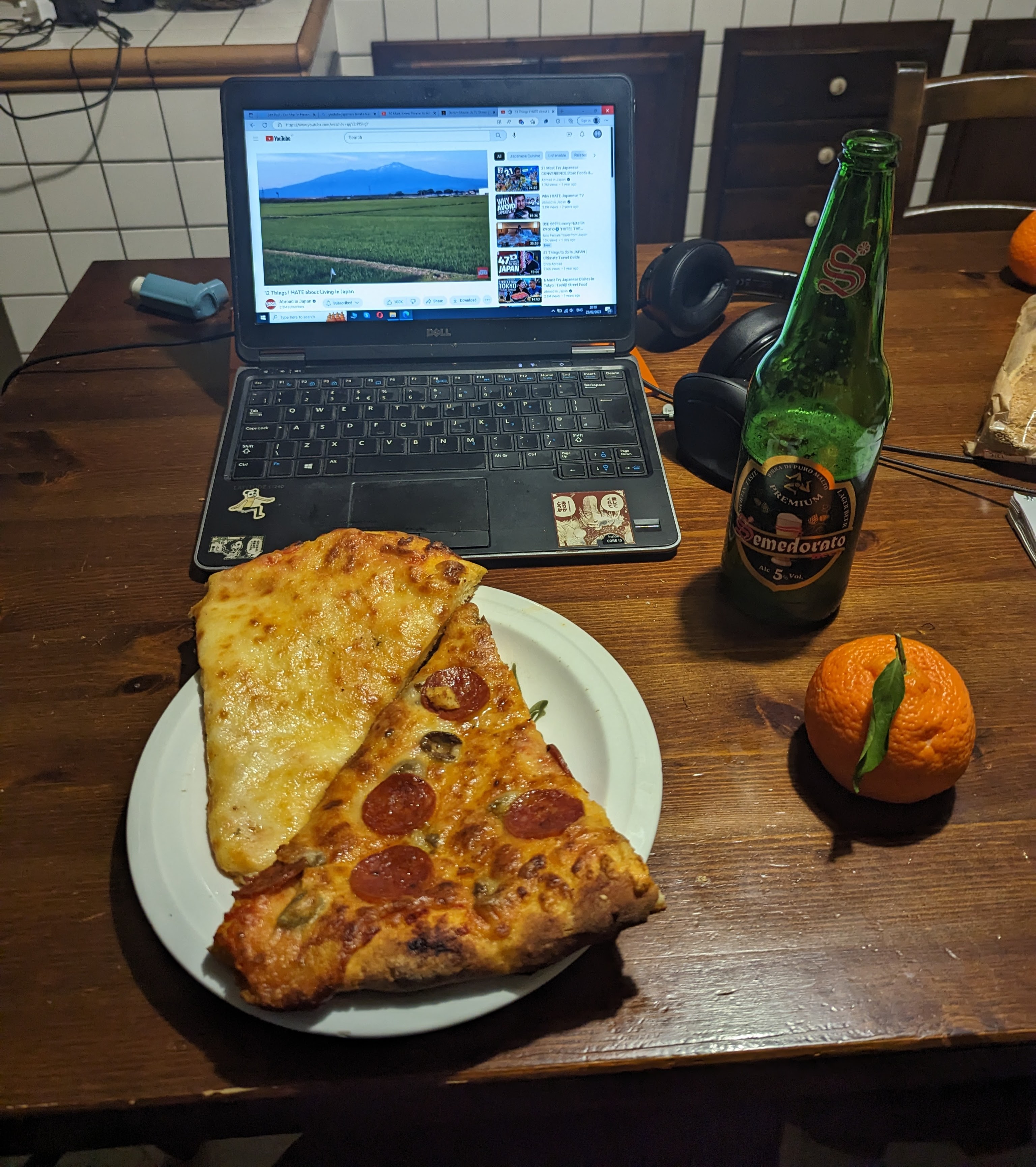 Speaking of which, I had a lovely big ol’ beer and two slices of the greasiest, most decadent pizza to welcome me home. No one likes a food blogger, well, no one with any self-respect, but this pizza, 1.80€ per slice, is something I will cherish the memory of to my dying day. Mazzara Salvatore, (https://maps.app.goo.gl/S7PduGqapa1UgSeZ8) I love you. Your brusque service endeared me all the more. I will wear your calorific deposits with pride.